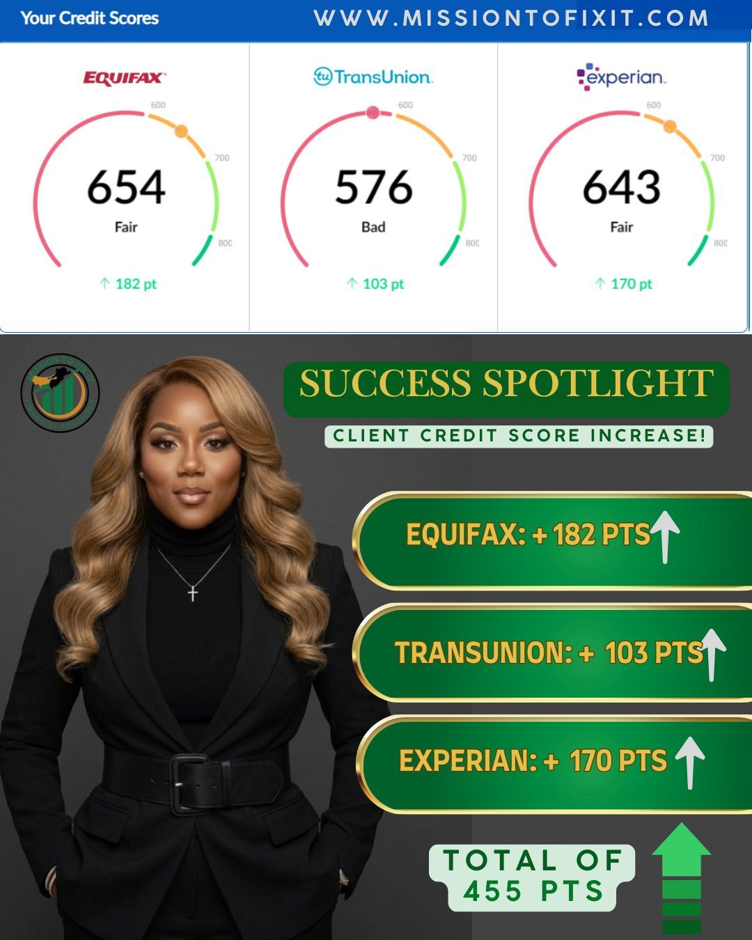 Mission To Fix It is the BEST credit repair company I have ever encountered. Being on the phone with Ms. Helm the first time felt like I have known her all my life. She is knowledgeable and broke it down so easy a child can understand. I’m so excited for my future credit reports!!! The absolute best. If you go anywhere else you’re wasting your time